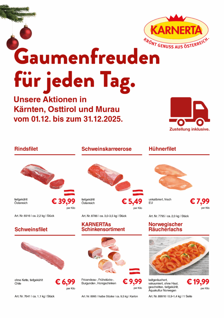 Egal, ob es sich um präzise portionierte Kurzbratenstücke, zarte Schnitzel, passgenaue Rouladen oder unseren Kärntner Speck in Streifen und Würfeln handelt – wir liefern Ihnen die Grundlage für kulinarische Meisterwerke.