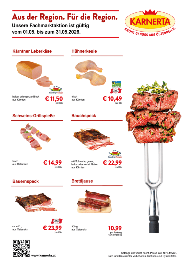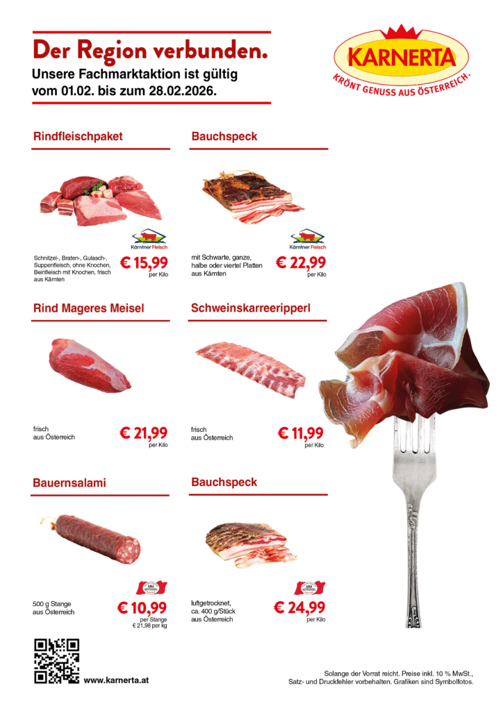 Entdecken Sie jeden Monat aufs Neue die besonderen Angebote in den KARNERTA Fachmärkten. Unsere hochwertigen Fleisch- und Wurstwaren punkten mit exzellentem Geschmack und einem fairen Preis.